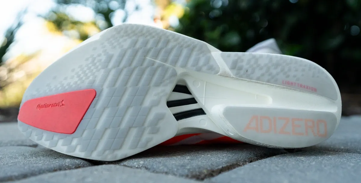 The mix of Lighttraxion and zoned Continental rubber gives the Adios Pro 4 really strong grip on the road, including in wet conditions.