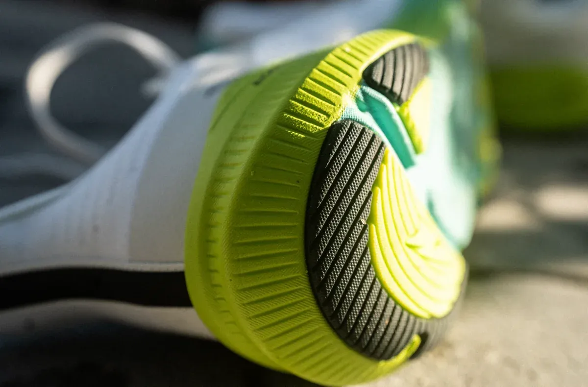 I found the rocker geometry, although subtle in its appearance, does help with smoother transitions, especially when paired with the rounded heel edges that guide each step without slapping the ground.