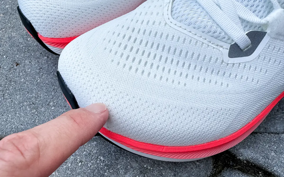 Breathability isn’t great, but that works in its favor during colder training months. I could see it feeling stuffy in summer, though. I also appreciate the upper's reinforced / tighter knit areas around the toe box.