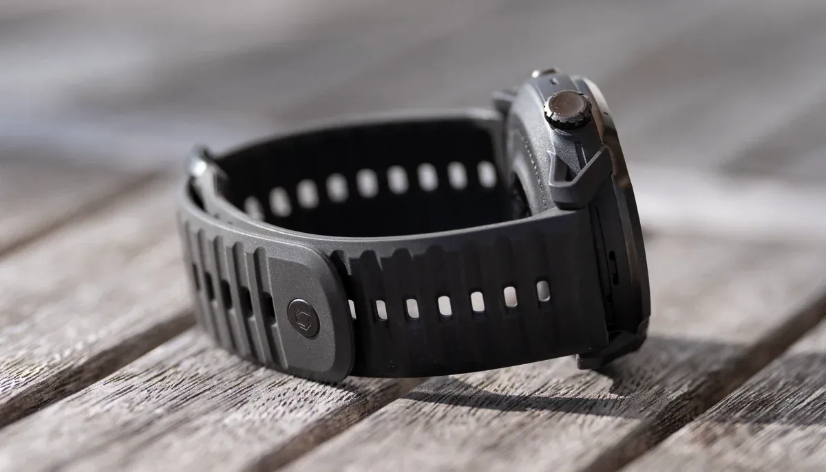It looks rugged, but doesn’t feel like a brick, the strap and lugs keep it stable without needing to crank it down, which matters on long runs when your arms can swell a bit.