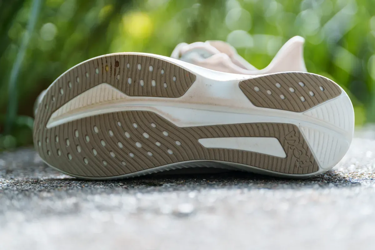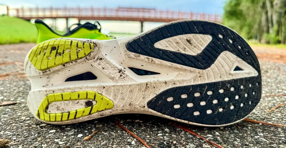 - The Mach X 3 outsole grips well but has some exposed foam that may wear over time. There are also some cutout, that are fine for road use, but avoid gravel, as stones can get picked up in them.
