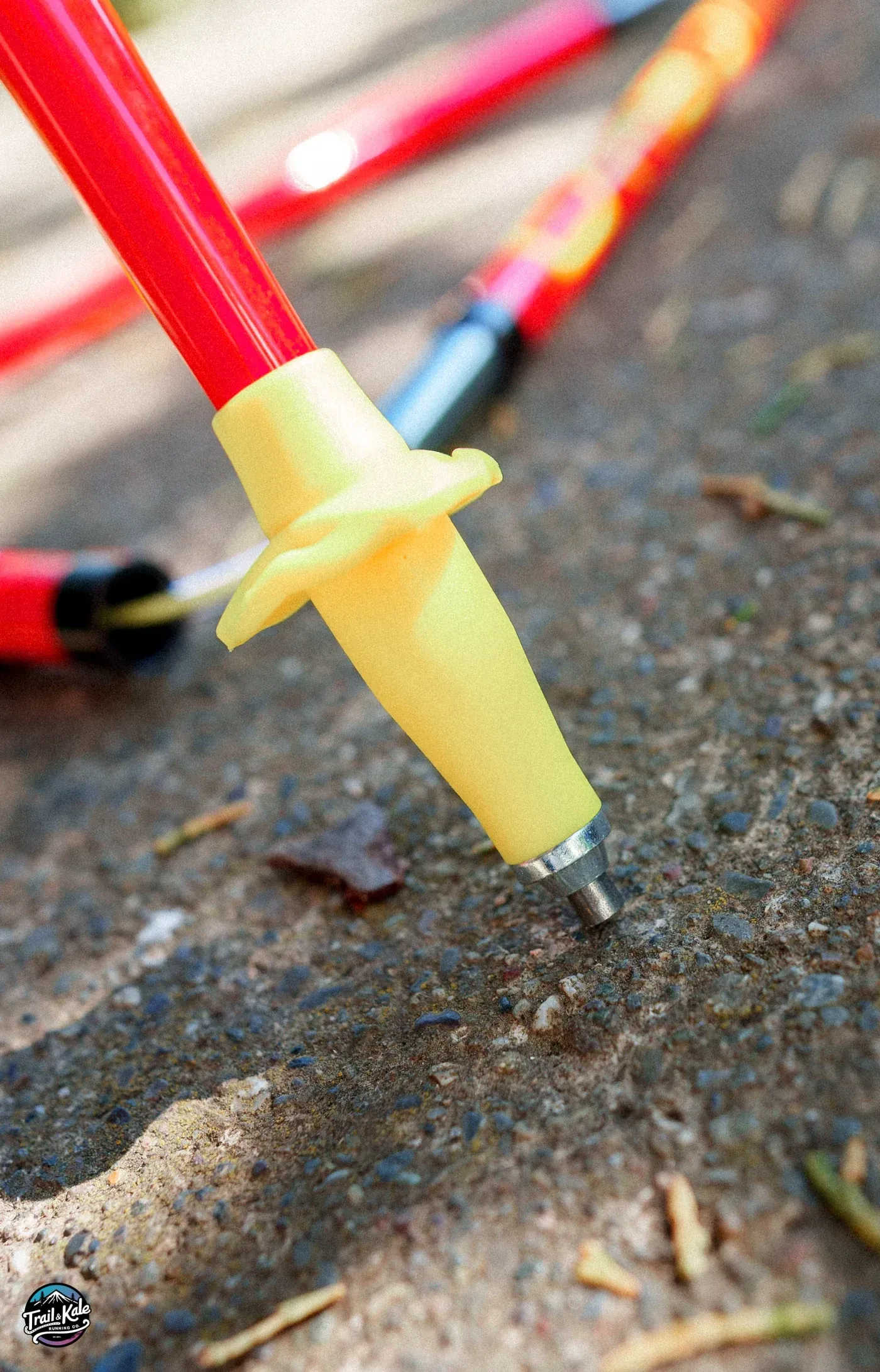 The carbide tip on these poles offers excellent traction on rocky and muddy terrain, significantly enhancing your stability and the durability of the tip.