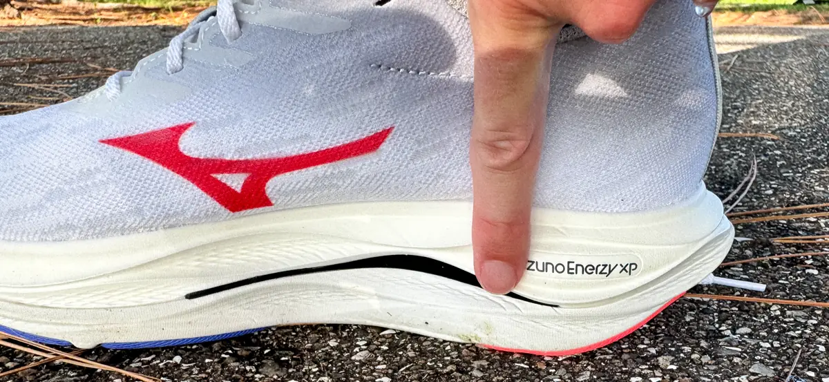 - Midsole: MIZUNO ENERZY XP (TPEE) supercritical foam (top layer) for soft landings and high rebound. Glass fiber–infused nylon Wave Plate (mid layer) for propulsion and energy return. MIZUNO ENERZY NXT (EVA) as a base layer for stability and balance. Smooth Speed Assist geometry to guide efficient gait