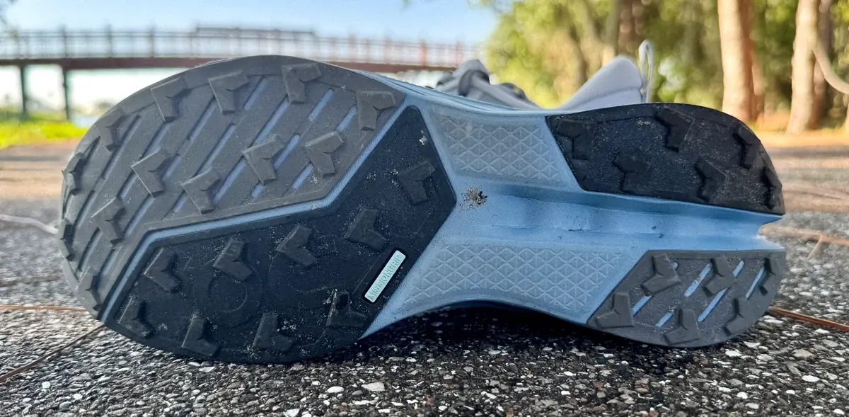 It’s not quite Vibram MegaGrip levels of bite, but the Missiongrip rubber is sticky and consistent across road, grass, gravel, and dry trail.