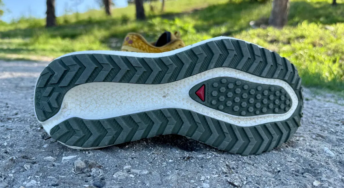 Underfoot, you get Salomon’s Gravel ContaGRIP outsole on the GRVL version. It adds slightly more bite on dry trails and gravel paths, but the lugs are still pretty shallow—think light trails or fire roads, not anything muddy or technical.